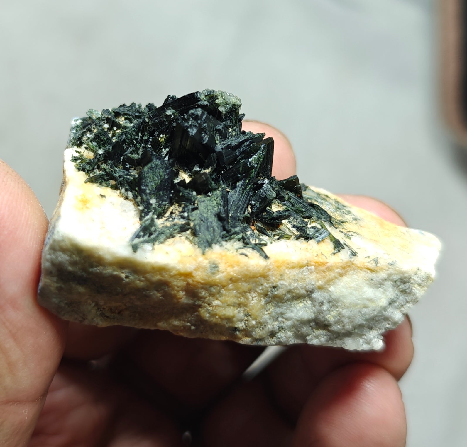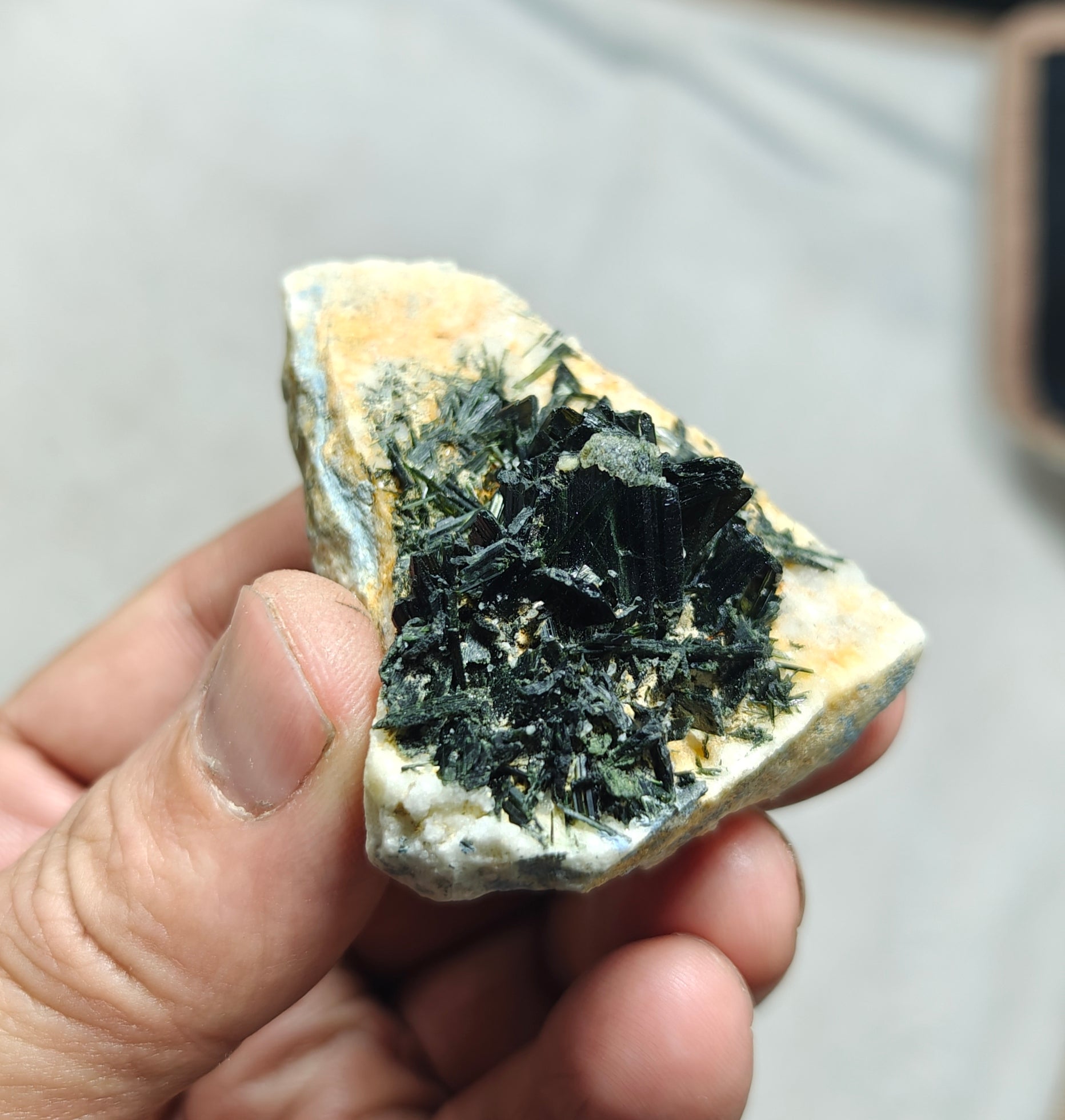 An amazing beautiful specimen of aegirine crystals on matrix.
