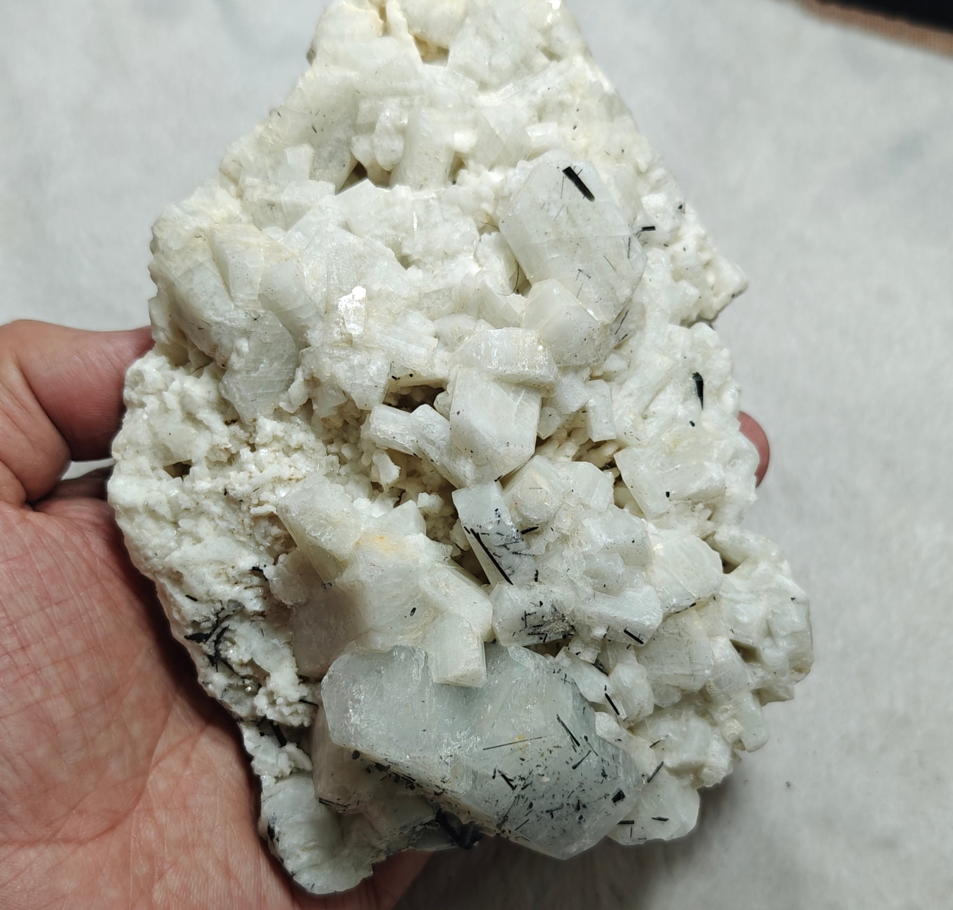 There are also black Tourmaline crystals on matrix and on aquamarine crystal. Both sides of the matrix has terminated feldspar.