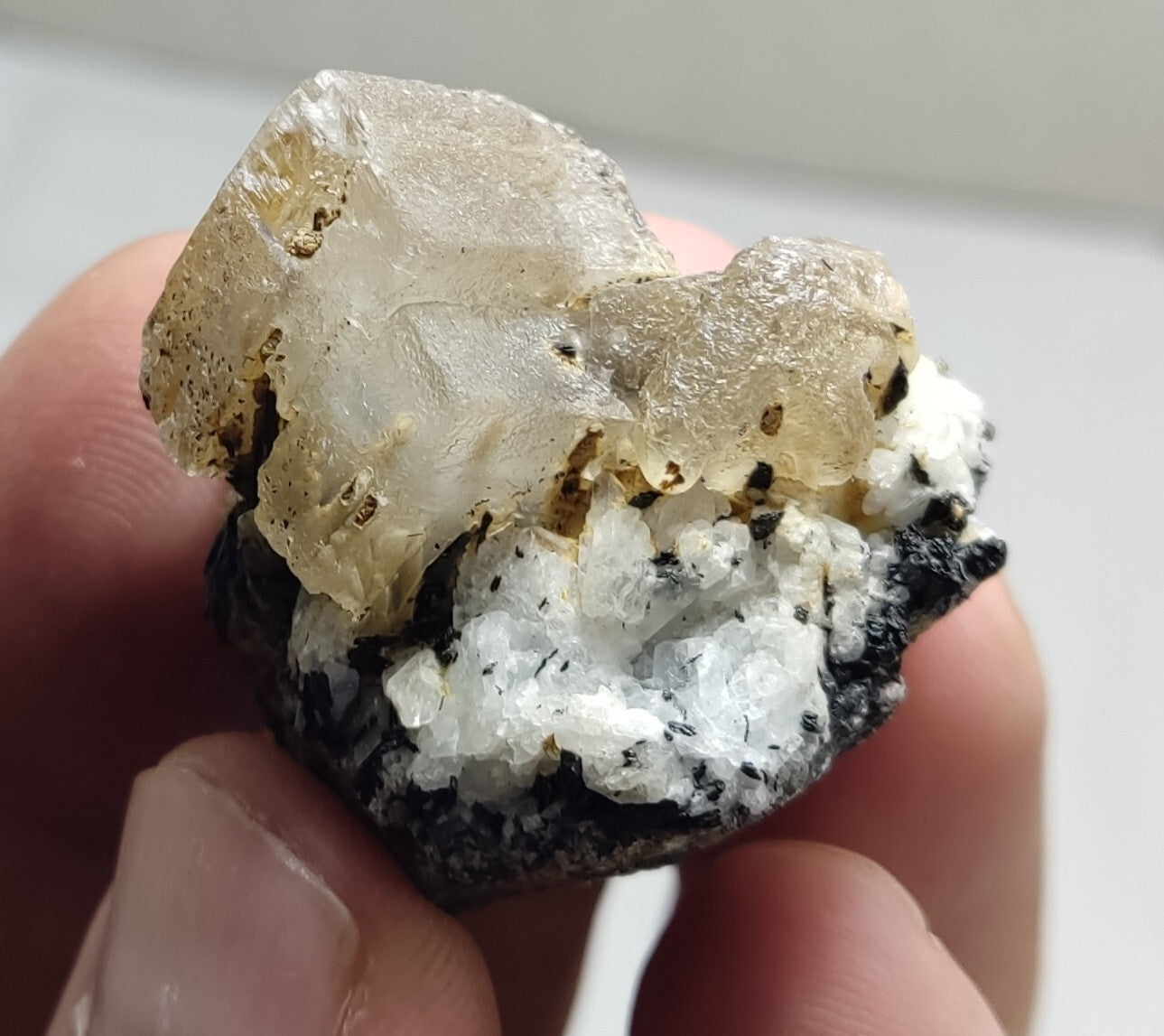 An aesthetic combo specimen of aegirine and calcite 25 grams