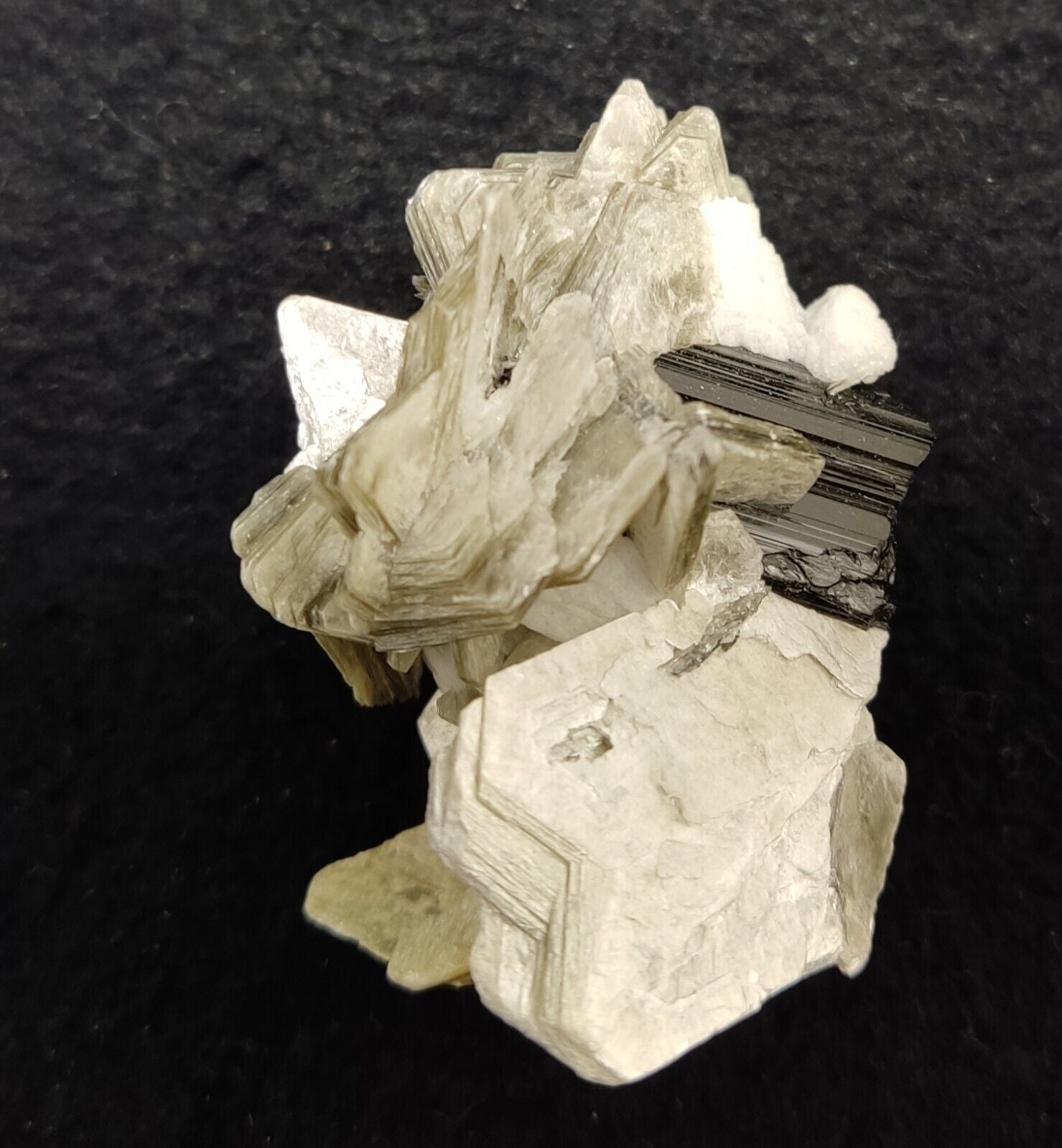 An aesthetic combo specimen of feldspar with muscovite and black tourmaline.