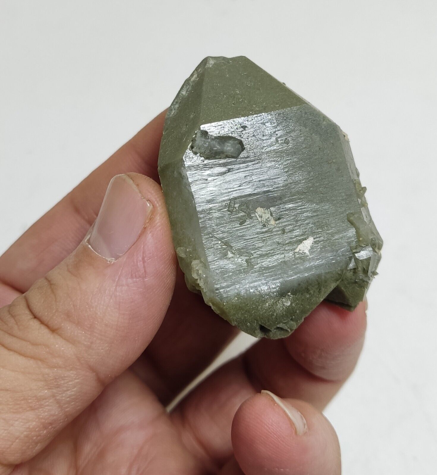 Fine terminations and green inclusions of chlorite.