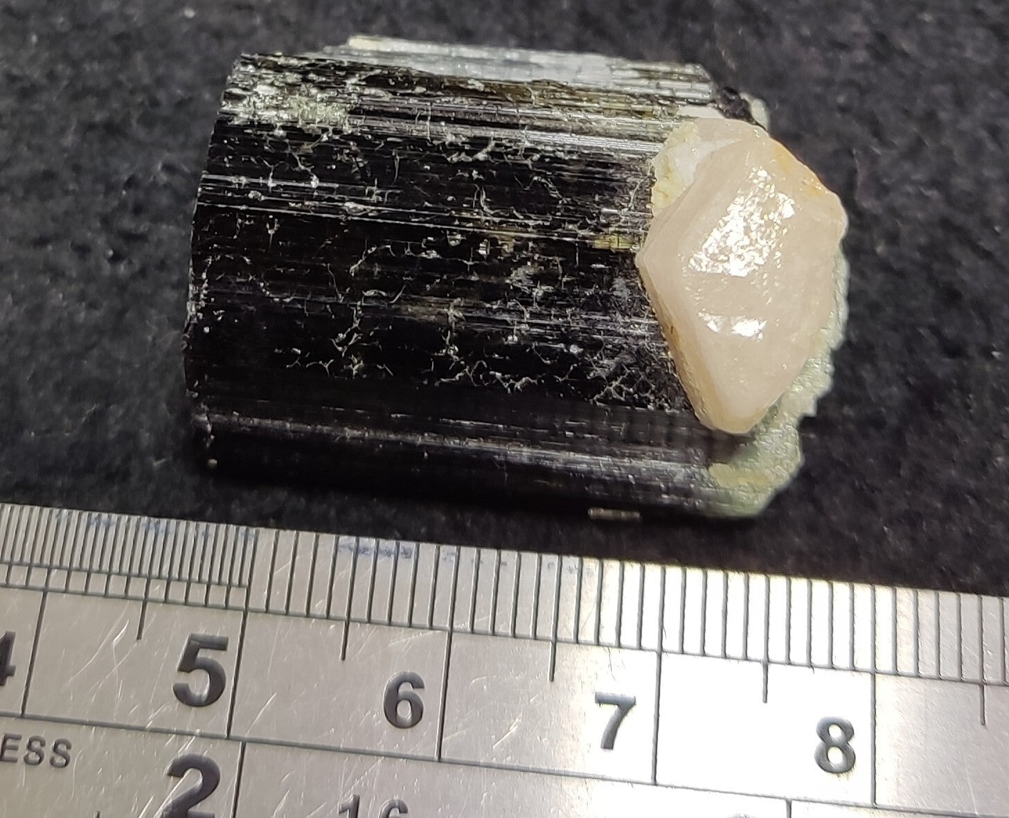 An aesthetic specimen of black Tourmaline crystal with associated apatite.