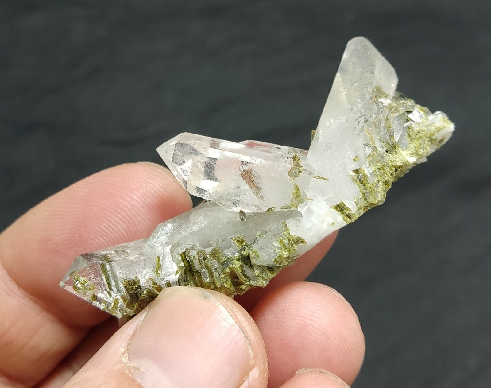 An aesthetic specimen of Epidote quartz cluster 19 grams
