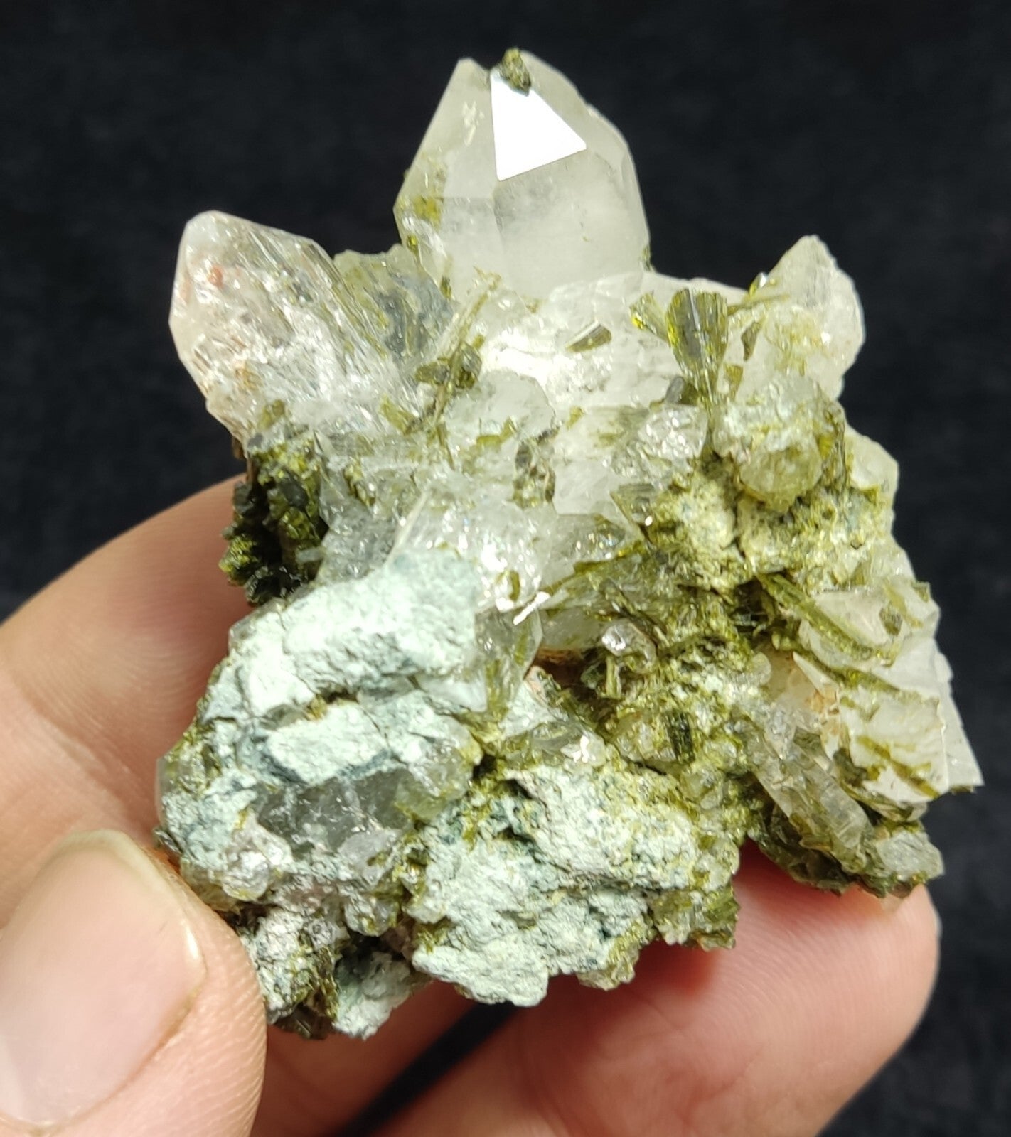 An Aesthetic specimen of Epidote and quartz crystals cluster.