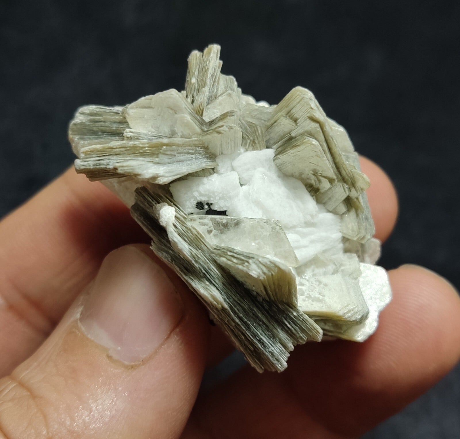 An Aesthetic specimen of muscovite with Tourmaline and albite 27 grams
