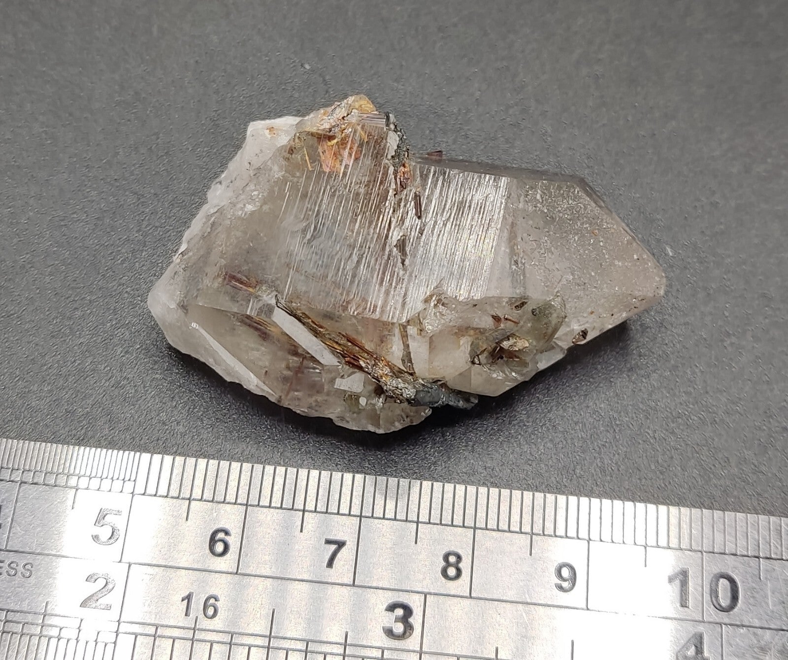 An aesthetic specimen of quartz with hematite and rutile inclusions 28 grams