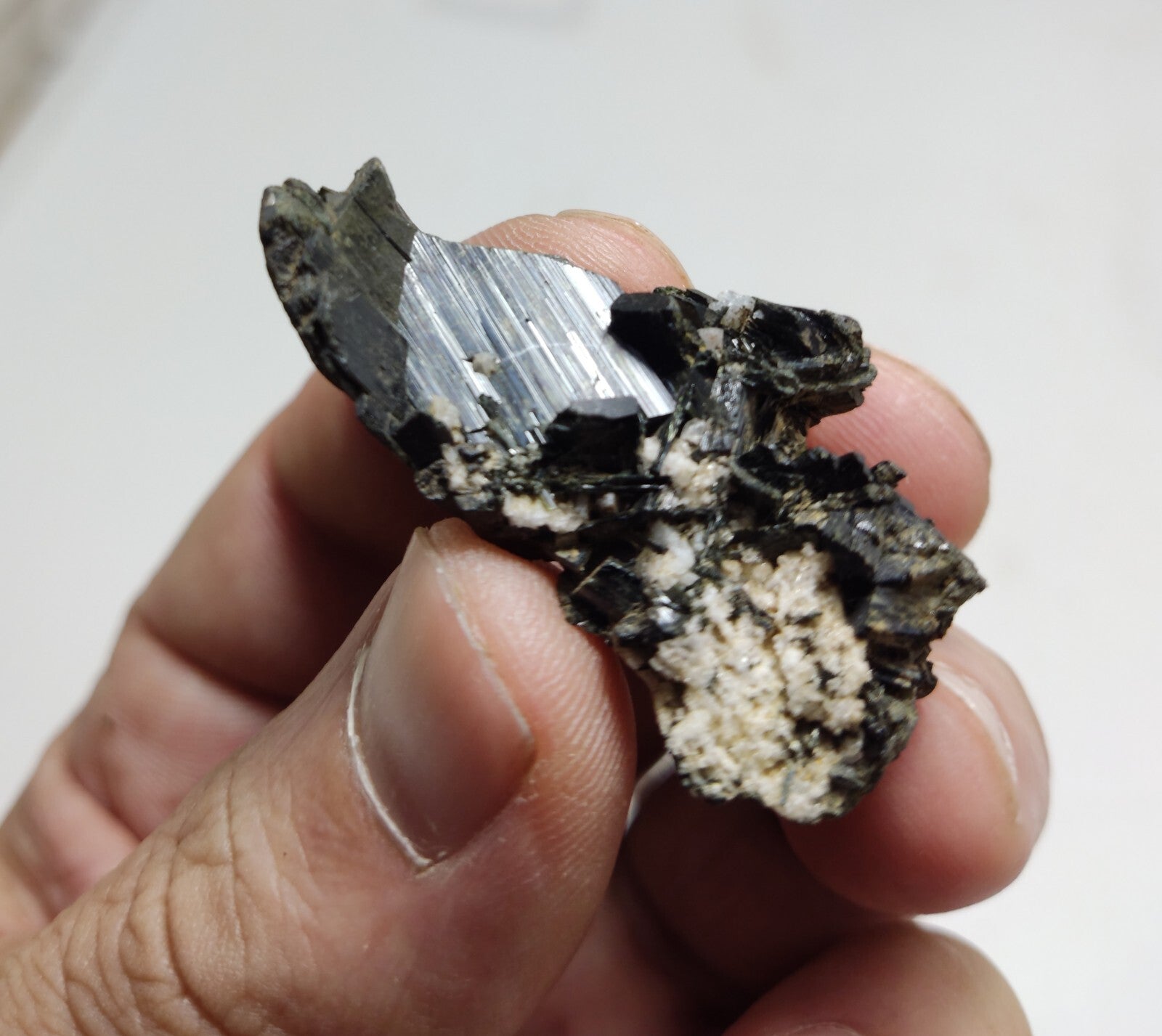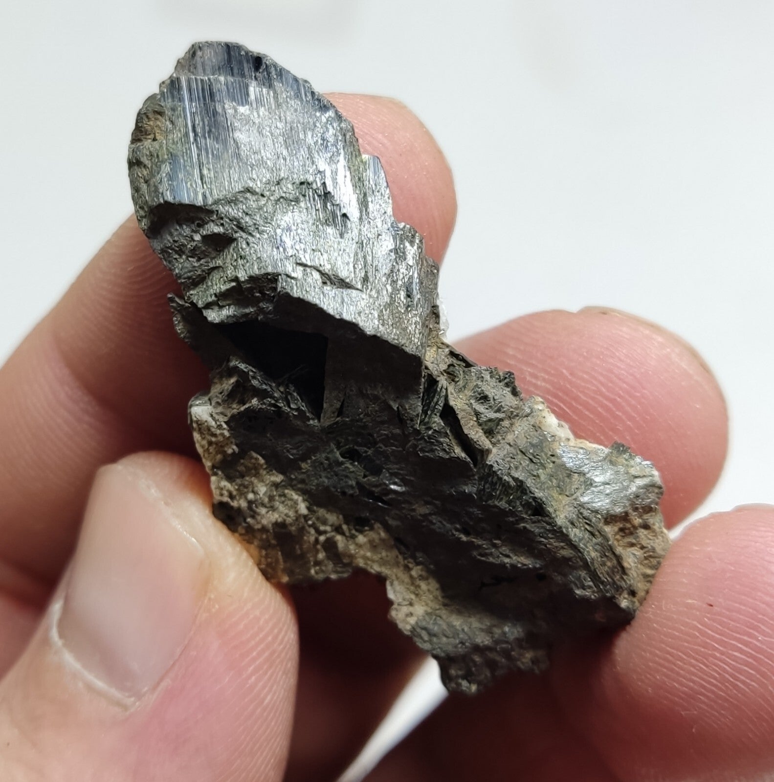 Naturally terminated aegirine crystal having lusterous surfaces.