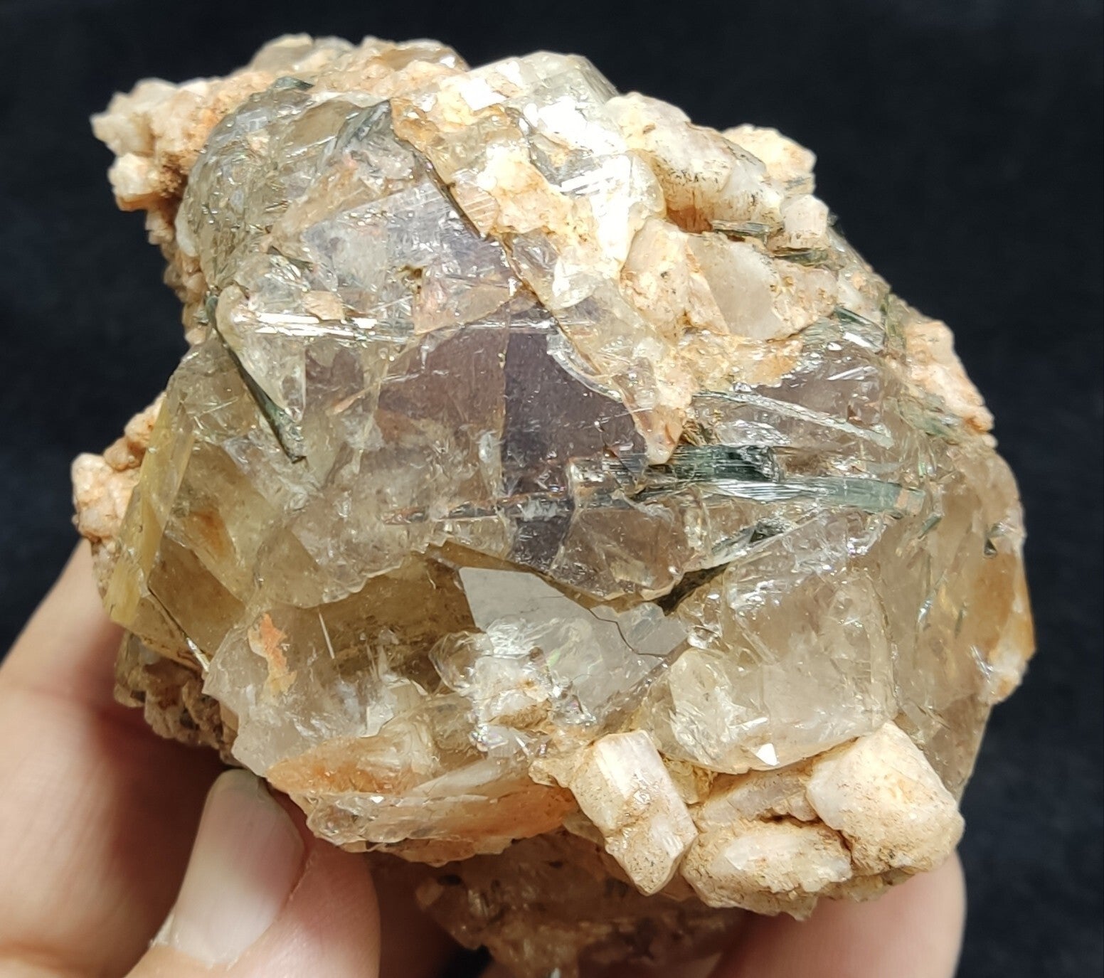 An Aesthetic terminated Quartz floater with aegirine 381 grams