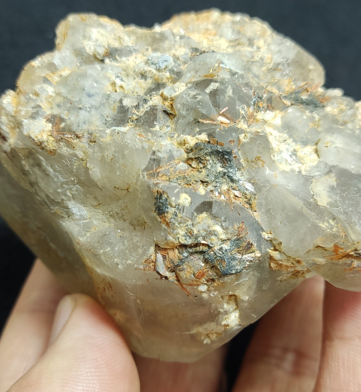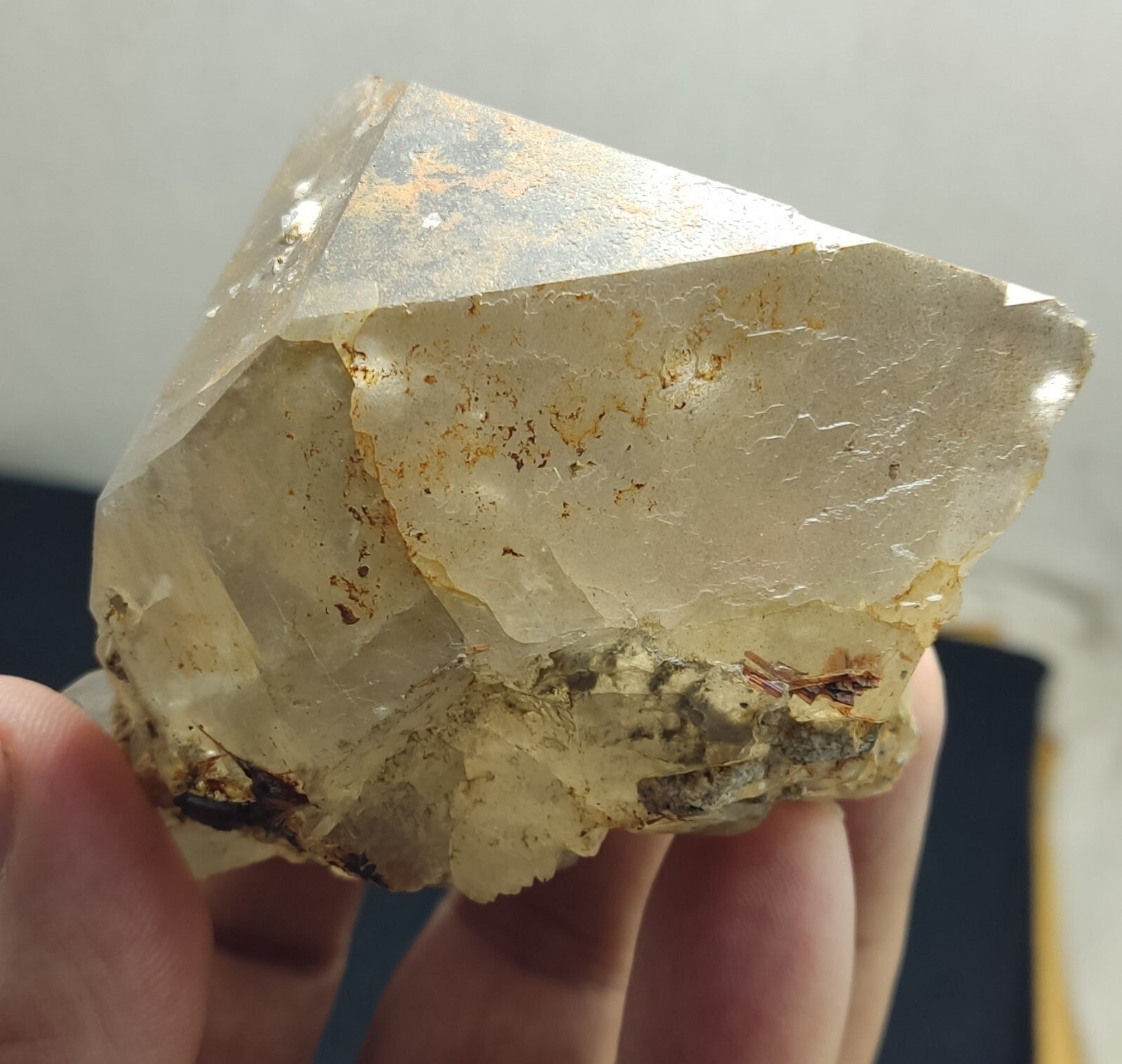 An Aesthetic terminated Quartz floater with rutiles and hematite 399 grams