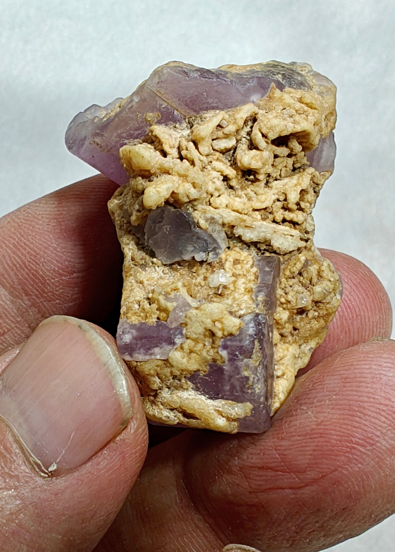 An amazing specimen of Fluorescent purple Apatite combined with albite.