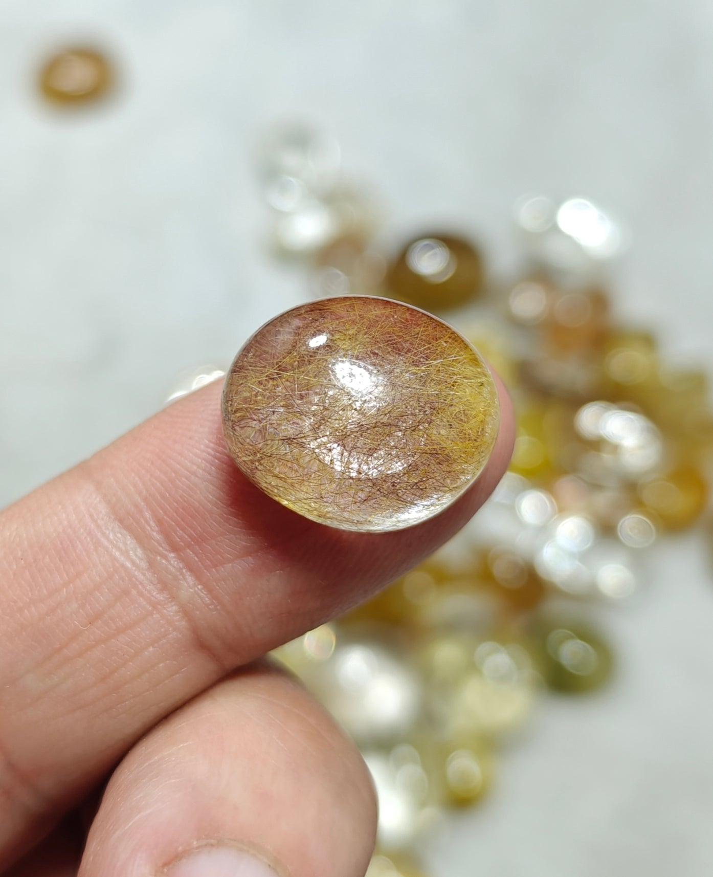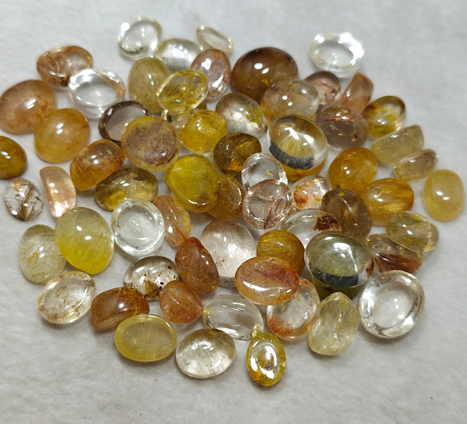 An amazing lot of polished Cabochon of Rutilated included Quartz.