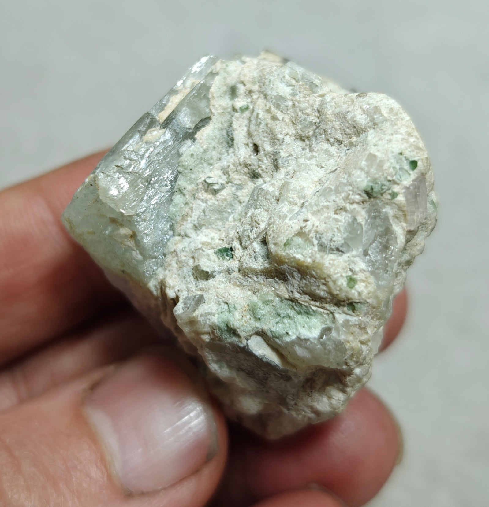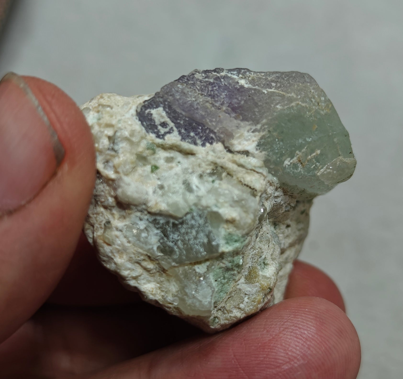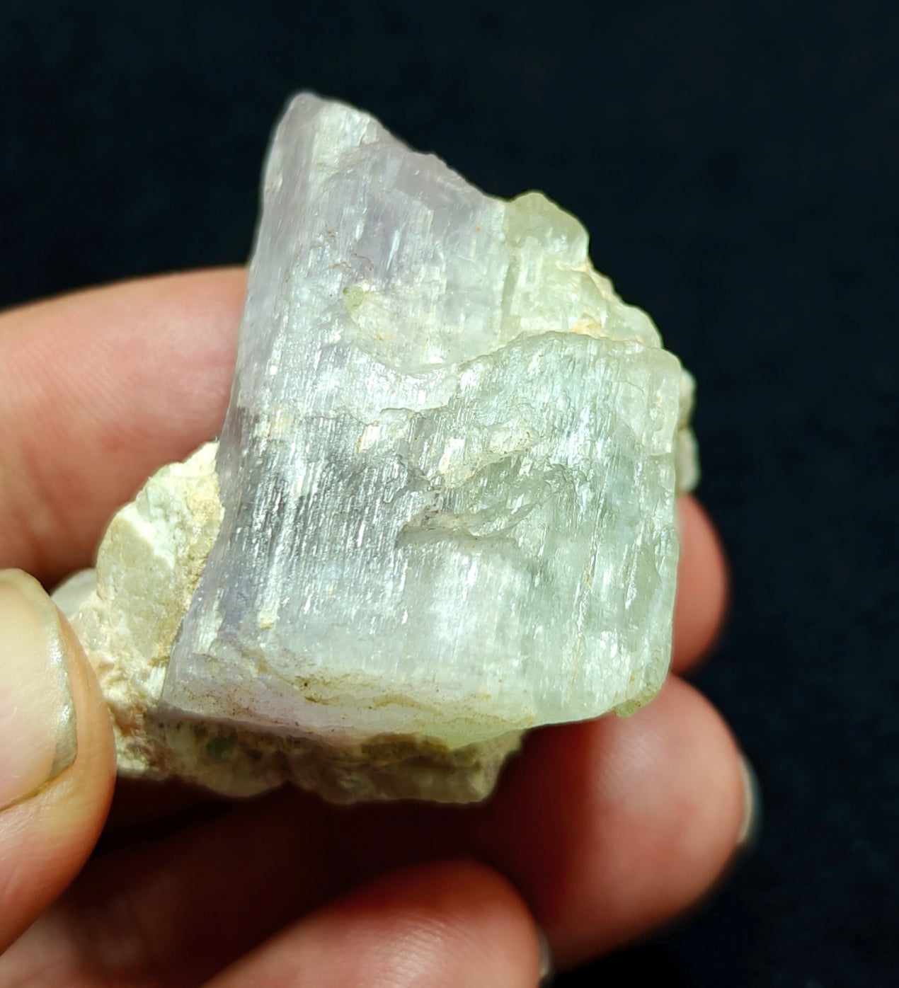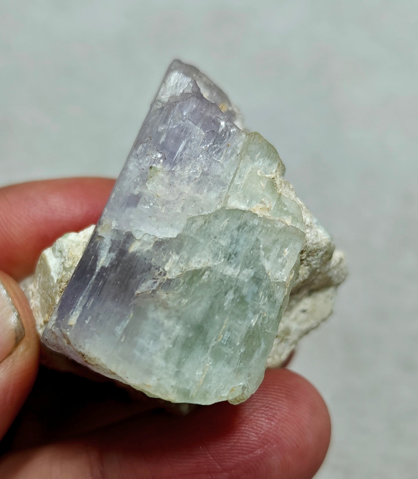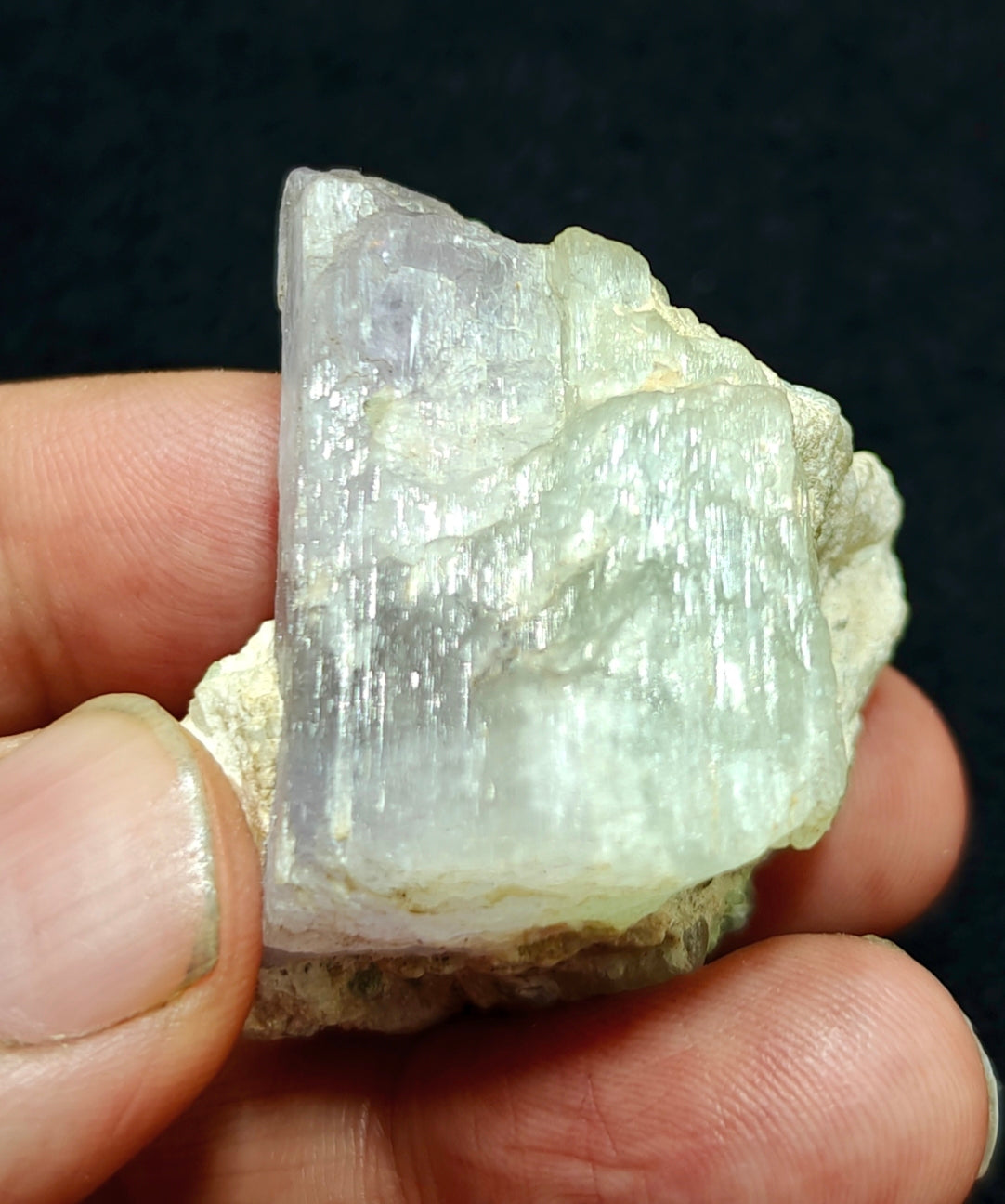An amazing specimen of bicolor Kunzite on matrix of Albite 53 grams