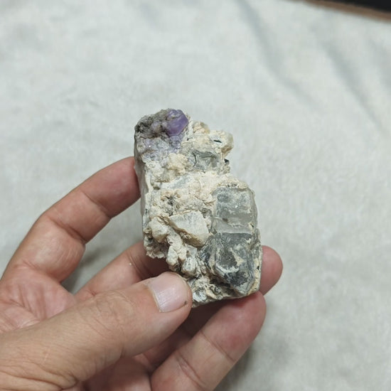 An amazing specimen of purple Apatite in matrix. Multiple Apatite crystals are present on matrix along with smokey quartz and some leftover tourmalines.