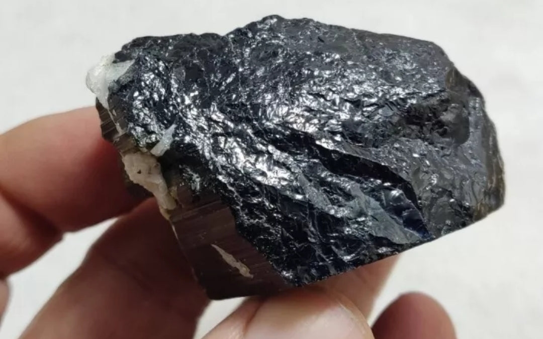 Tourmaline has mainly black color, lusterous surfaces. However on the sides has green color hues and natural patterns and terminations.