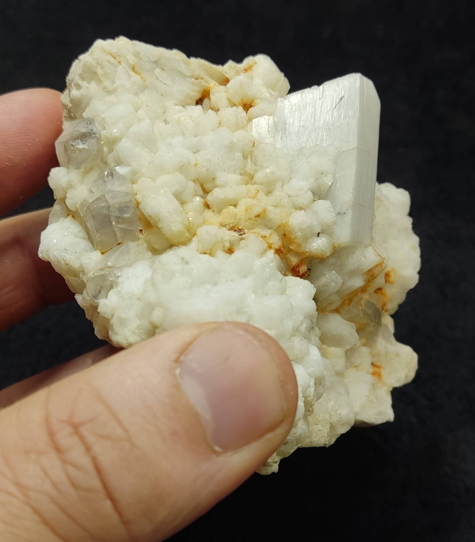 An amazing specimen of perfectly terminated feldspar crystal on matrix with albite and quartz crystals.