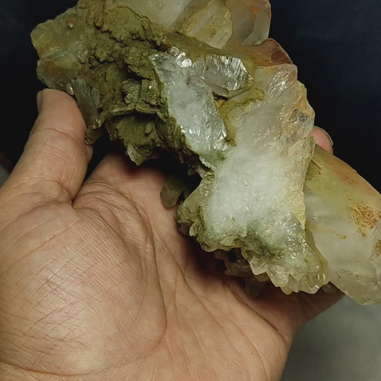 An aesthetic specimen of chlorite quartz. Specimen has green color inclusions of chlorite. Some tips have iron inclusions. Specimen has cluster like formations. self standing specimen. Natural terminated surfaces patterns and tips terminations. All natural. No heat or treatment. Suitable for collection display study energy metaphysical purposes etc. Origin Balochistan Pakistan. Best for display. Best for collection. Weight 488 grams. Dimension 14x7x5 cm. Dimensions are approximate. There maybe very slight variation in measurements. All our shipments are properly packed and sent out through trackable courier services. Eb 28 cross posted ***Note to Buyers*** *We offer combined shipping. If you have purchased several items from us please request for the total invoice for shipping to be combined. We allow 3 days for combined shipping. *If you are not satisfied with the purchase please contact us to resolve before leaving a review/feedback. *We appreciate positive feedback and reviews. Enjoy shopping with us ! *The buyer is full responsible for any import customs duties and taxes in his country. We do not have any control over these duties/taxes. ** The shipment normally takes 15 to 28 working days to deliver by standard economic post while expedited shipments take 9-15 days to deliver. **The given times of delivery are estimated. Actual times of delivery may vary depending upon many international shipping factors. **Our Goal is that you will be satisfied with your purchase. If you are not satisfied with your purchase please contact us within 7 days of receiving it. **if you want to return the specimen to us, We will refund you only if the specimen reaches us intact ( please understand that the shipping charges will not be included in the refund payment ) **We do not take responsibility for specimens damaged during return shipment. **Please note that this is a natural product (unless otherwise, which will be mentioned in the description), sometimes stones and crystals have small imperfections and blemishes. **Please read the description and view all the photos/video before making a purchase. **By purchasing from us you agree to comply with all of our shop policies. **If you have any questions, queries please contact. Thank You for your cooperation and understanding. Happy Shopping ! * * * Some General Information: Apart from this listings, other products that are available from our store including but not limited to; Quartz, Feldspar, Mica, Calcite, Pyrite Magnetite, Hematite, Olivine, Beryl Topaz, Fluorite, Garnet, Tourmaline, Muscovite, Lepidolite, Apatite, Barite, Siderite, Grandidierite, Aquamarine, beryl, emerald, sapphire, Ruby black tourmaline and different varieties of quartz such as brookite quartz, chlorite Quartz, amethyst quartz, smoky quartz, polished/unpolished quartz etc. Our products are Naturally, Unique, and are suitable for Artisan work, Jewelry making and Home decor. These products can also be used as Craft supplies, Wedding gifts, healing and meditation purposes. Our crystals are ideal for using in chakra, meditation, energy and healing practices. Some of these can be used in lapidary such as making cabochons, carving, faceting, and jewelry sitting, wire wrapping, wearing and studying etc. Our store hosts different types of shapes such as loose gems, polished stones, natural points, cabochons etc. Please don't hesitate to contact if you need any information, or any special products in gems and minerals. |
