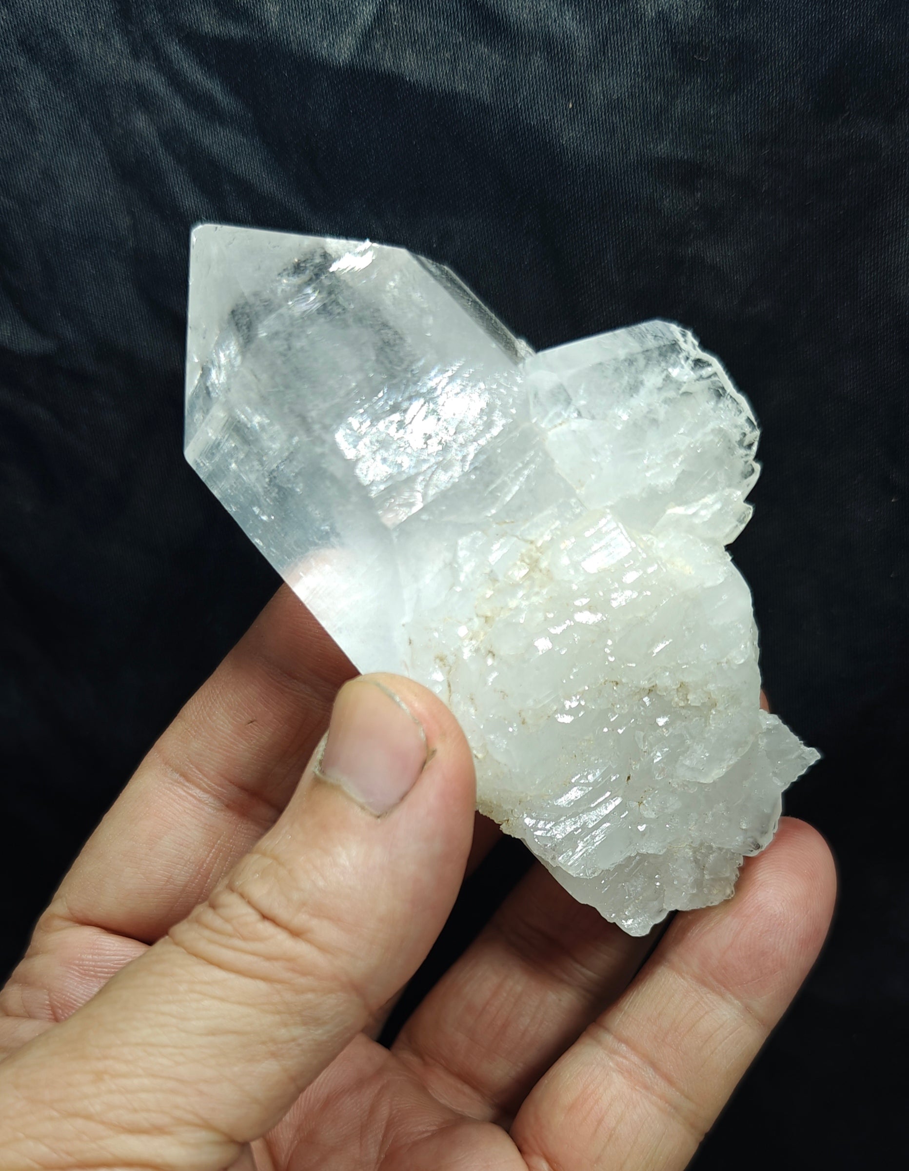 An amazing aesthetic Terminated quartz Crystal with two other small Terminated quartz Crystals attached to it's bottom and side.