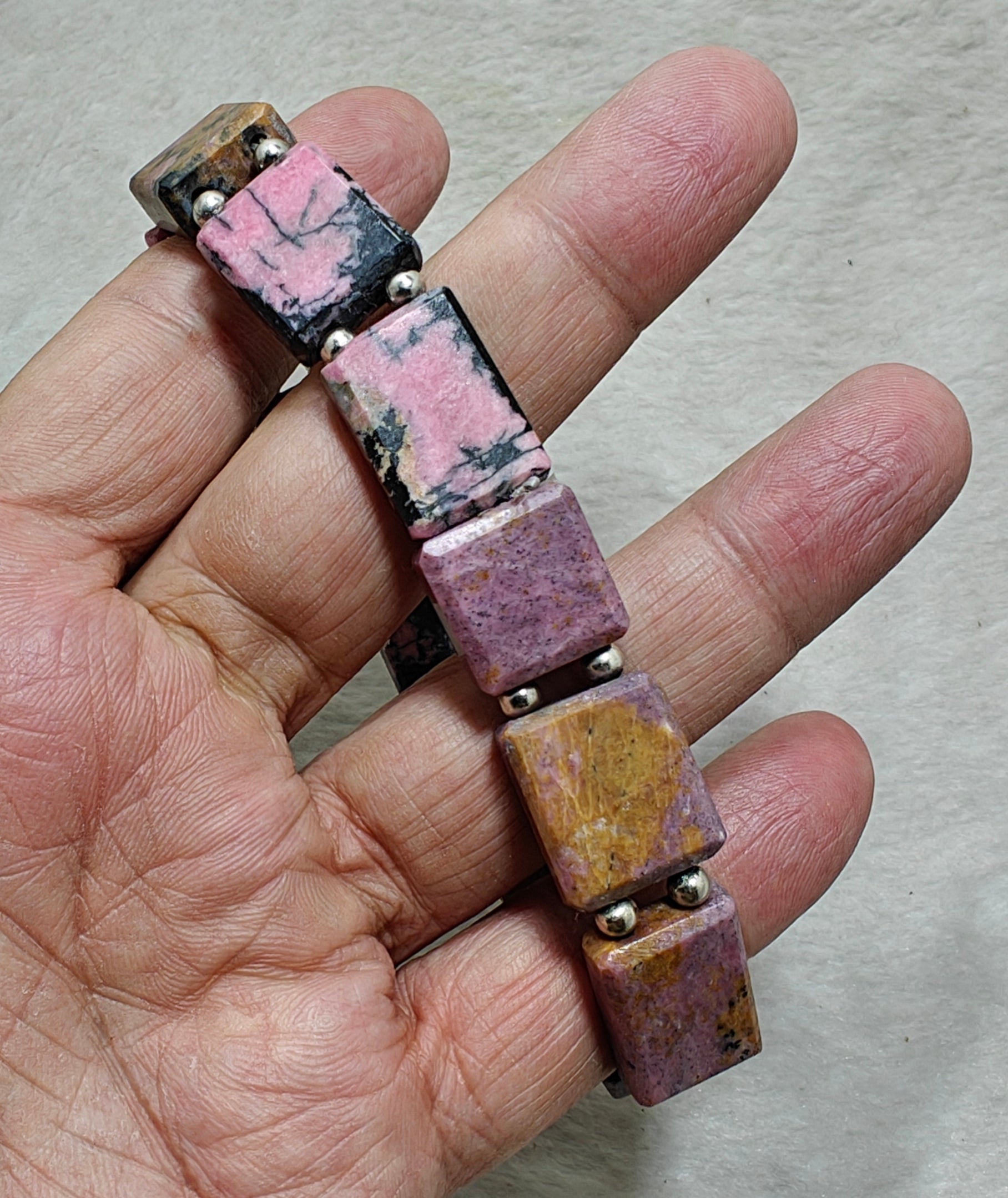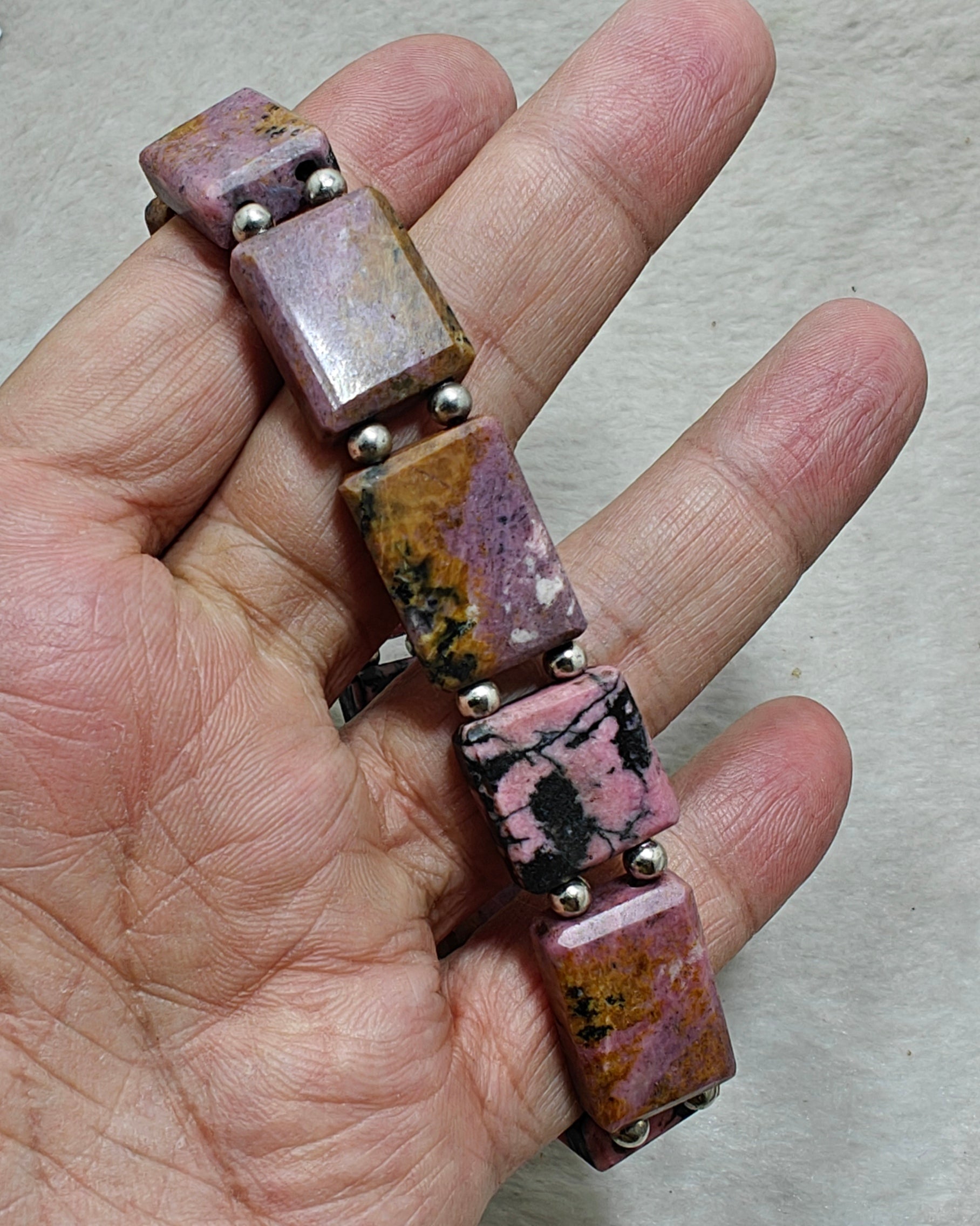 Natural rhodonite bracelet, elastic stretch fit. 9 inch length