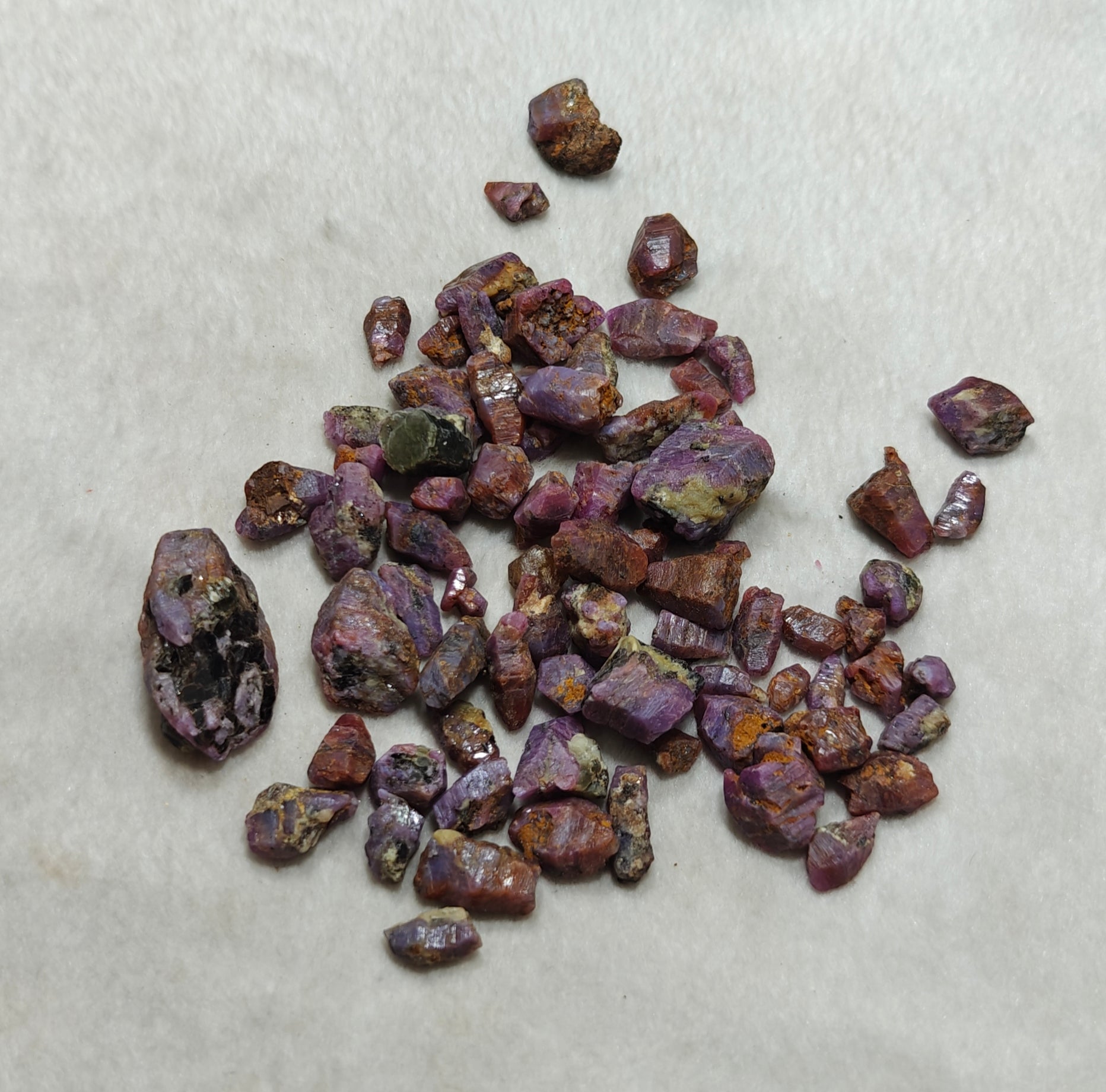Rough lot of Ruby crystals.
